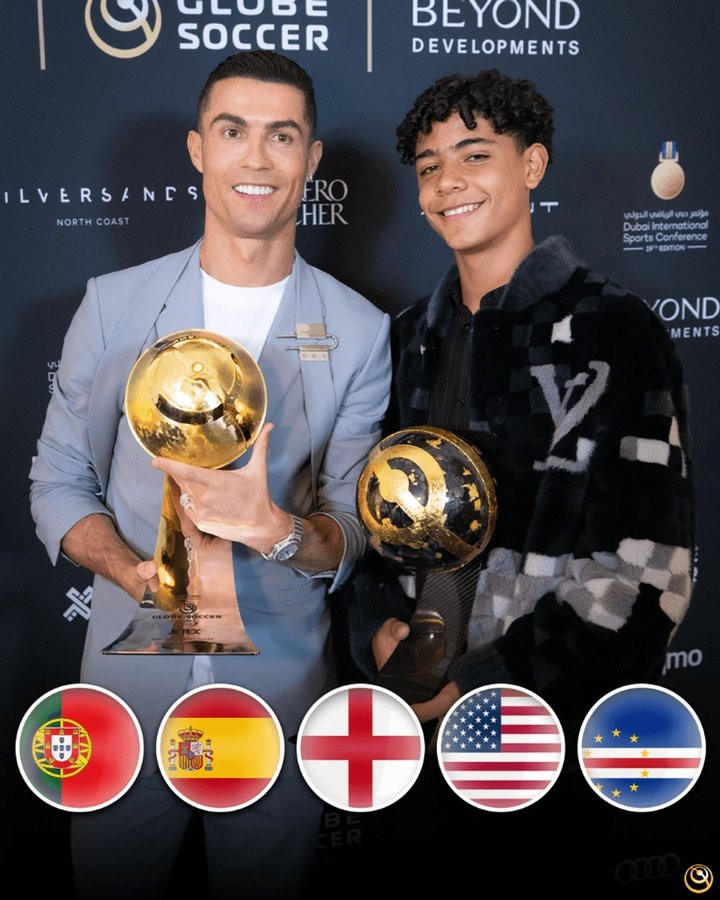 直播吧03月27日讯C罗的儿子,14岁的迷你罗目前正在利雅得胜利青年队效力,并且不断成长。西媒Antena3报道表示,他有资格为5支国家或地区代表队出战。