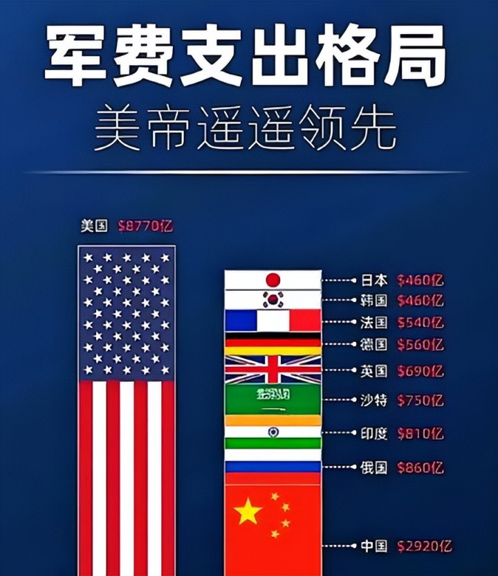 2024年,美国军费8860亿美元。看着吓人,其实是虚胖。60%的钱花在海外基地、航母舰队上。几百个基地遍布全球,像吸血鬼一样吸干了财政。